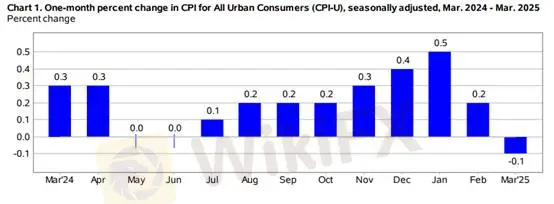 Theo dữ liệu từ Cục Thống kê Lao động Hoa Kỳ (BLS), chỉ số giá tiêu dùng (CPI) tháng 3 ghi nhận mức sụt giảm toàn diện. CPI chưa điều chỉnh theo mùa ghi nhận tăng 2,4% so với cùng kỳ năm ngoái, giảm 0,4 điểm phần trăm so với tháng trước, đánh dấu tháng giảm thứ ba liên tiếp và trở về mức của tháng 9 năm ngoái – thời điểm Fed bắt đầu cắt giảm lãi suất. CPI lõi cũng giảm 0,2 điểm phần trăm xuống còn 2,8%. Xét theo tháng, CPI điều chỉnh theo mùa giảm (-0,1)%, đây là lần đầu tiên trong 5 năm qua xuất hiện mức giảm theo tháng, trong khi CPI lõi chỉ tăng 0,1%.