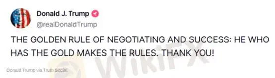 Lời nói đầu:Vào hôm qua (21/4), ông Trump đã đăng tải trên mạng xã hội với nội dung:THE GOLDEN RULE OF NEGOTIATING AND SUCCESS: HE WHO HAS THE GOLD MAKES THE RULES. THANK YOU!(Tạm dịch: Quy tắc vàng trong đàm phá