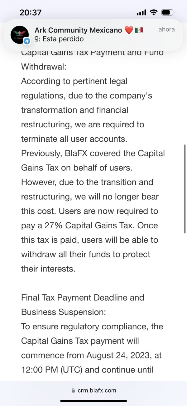 Después del 18 de agosto la aplicación cancelo los retiros y nos dijeron que esperáramos hasta el 25 de agosto y el día 24 de agosto dio comunicado de que todas las cuentas serían canceladas si no depositábamos una cantidad del 27% de impuesto, y me dijo así a muchas personas y cosas diferente. yo tengo una inversión de 2398 Theter USDT y no me deja retirar nada. Muchos conocidos que invirtieron de igual manera lo intentaron y no los dejaron me gustaría su apoyo para poder retirar el dinero invertido dentro de la plataforma.
