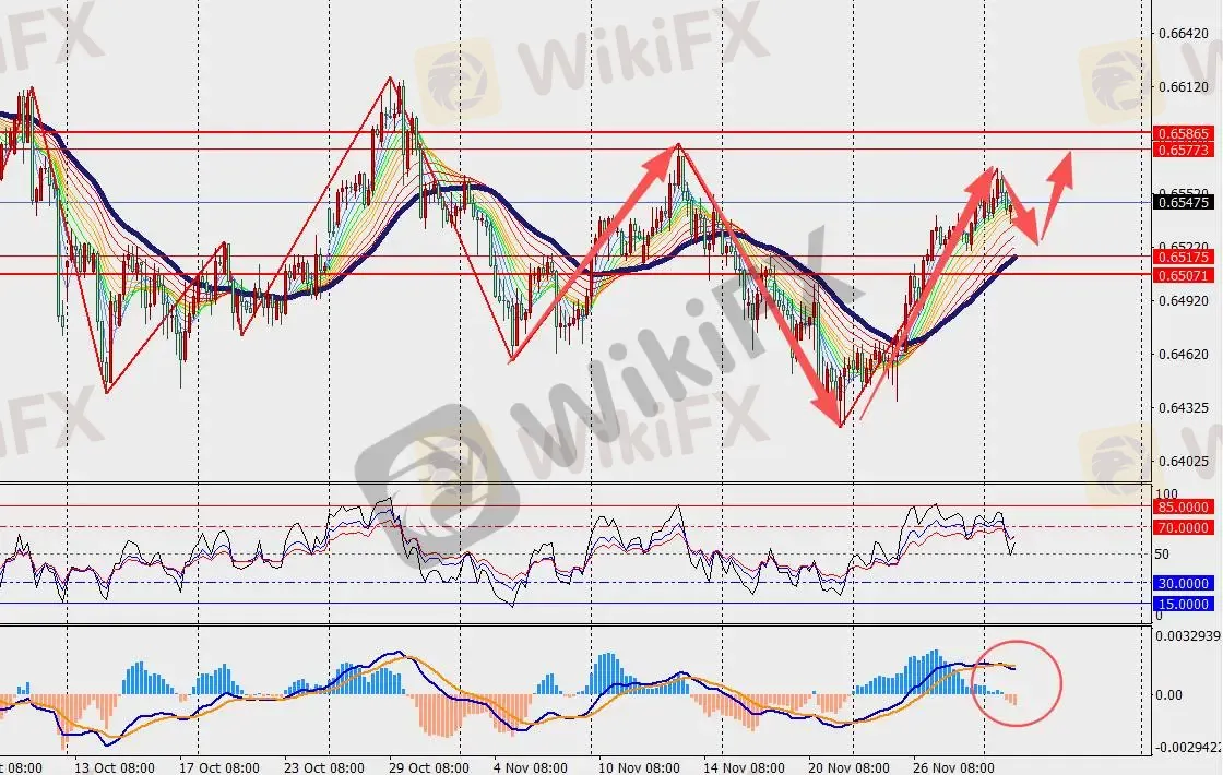 技术面:澳元兑美元H4级别反弹遇阻,并在48日多空分界线上方运行。然而,MACD双线和量能柱在零轴上方扩张。澳大利亚经济复苏态势正日趋广泛,多个经济部门共同形成支撑,而非依赖个别领域的单独增长。