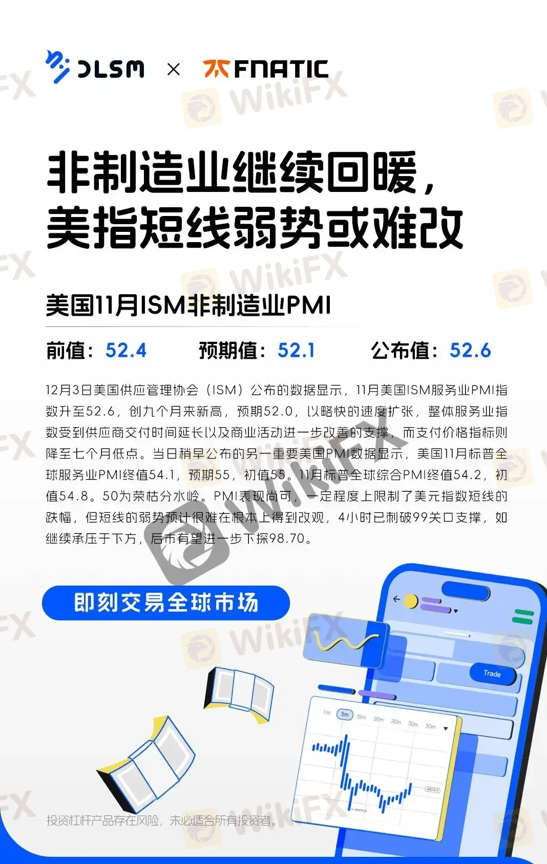 美国11月ISM非制造业PMI:前值52.4 预期52.1 公布值52.6