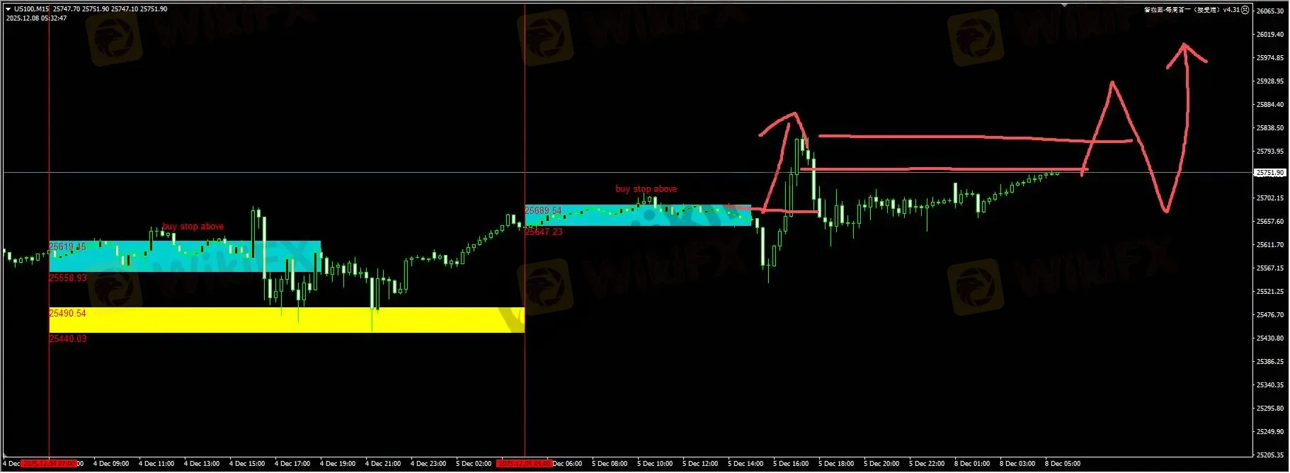 纳指:我们蓝色插件提示的buy stop在先打了一个毛刺之后,还是展现了不错的效果。日内我们继续观察这种高位扫荡之后,震荡攀升的走势,尝试在扫荡之后抓多头信号。详细位置请咨询插件。