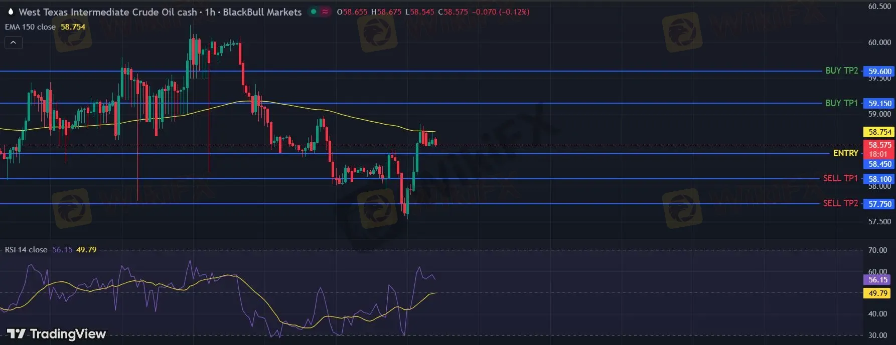 在 58.45 下,看空,目标价位定在 58.10 ,然后为 57.75。