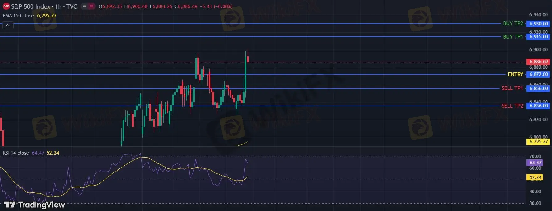 在 6872 之上,看涨,目标价位为 6915 ,然后为 6930 。