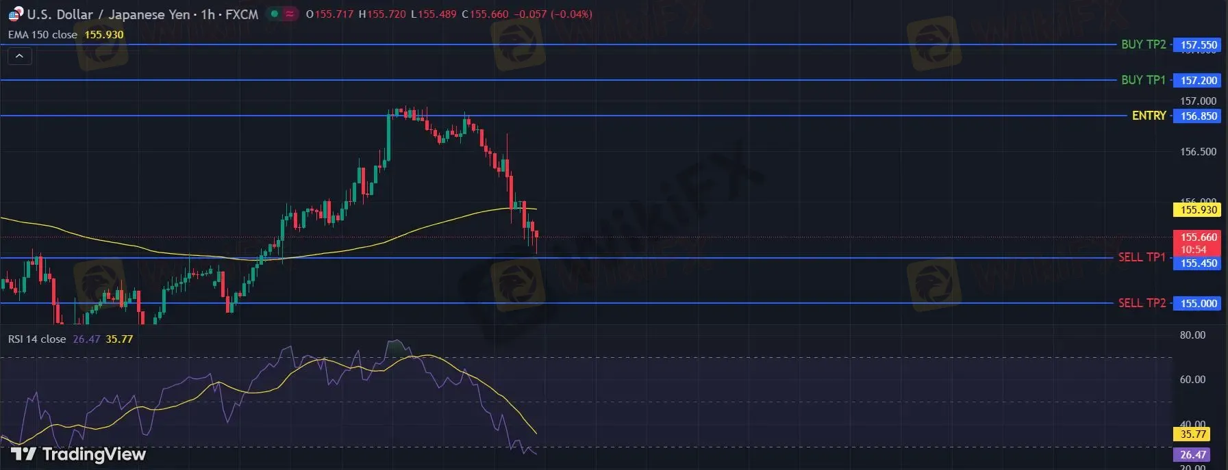 在 156.85 之下,看跌,目标价位为 155.45 ,然后为 155.00 。