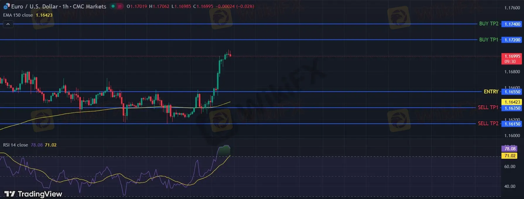 在 1.1655 下,看空,目标价位定在 1.1635 ,然后为 1.1615。