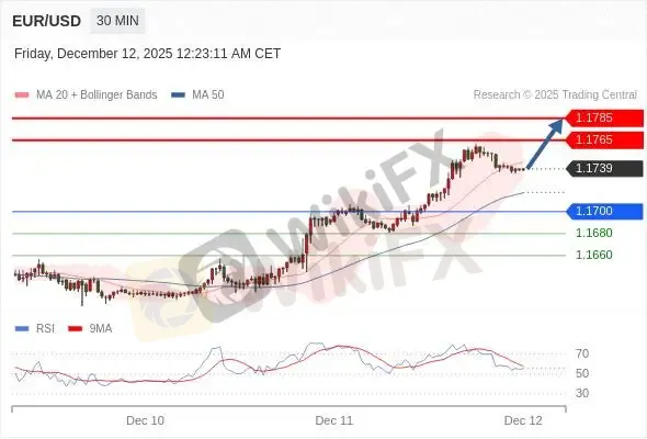 交易策略: 在 1.1700 之上,看涨,目标价位为 1.1765 ,然后为 1.1785。
