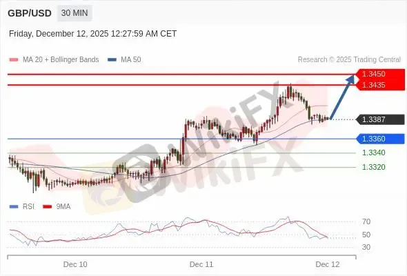 交易策略: 在 1.3360 之上,看涨,目标价位为 1.3435 ,然后为 1.3450。