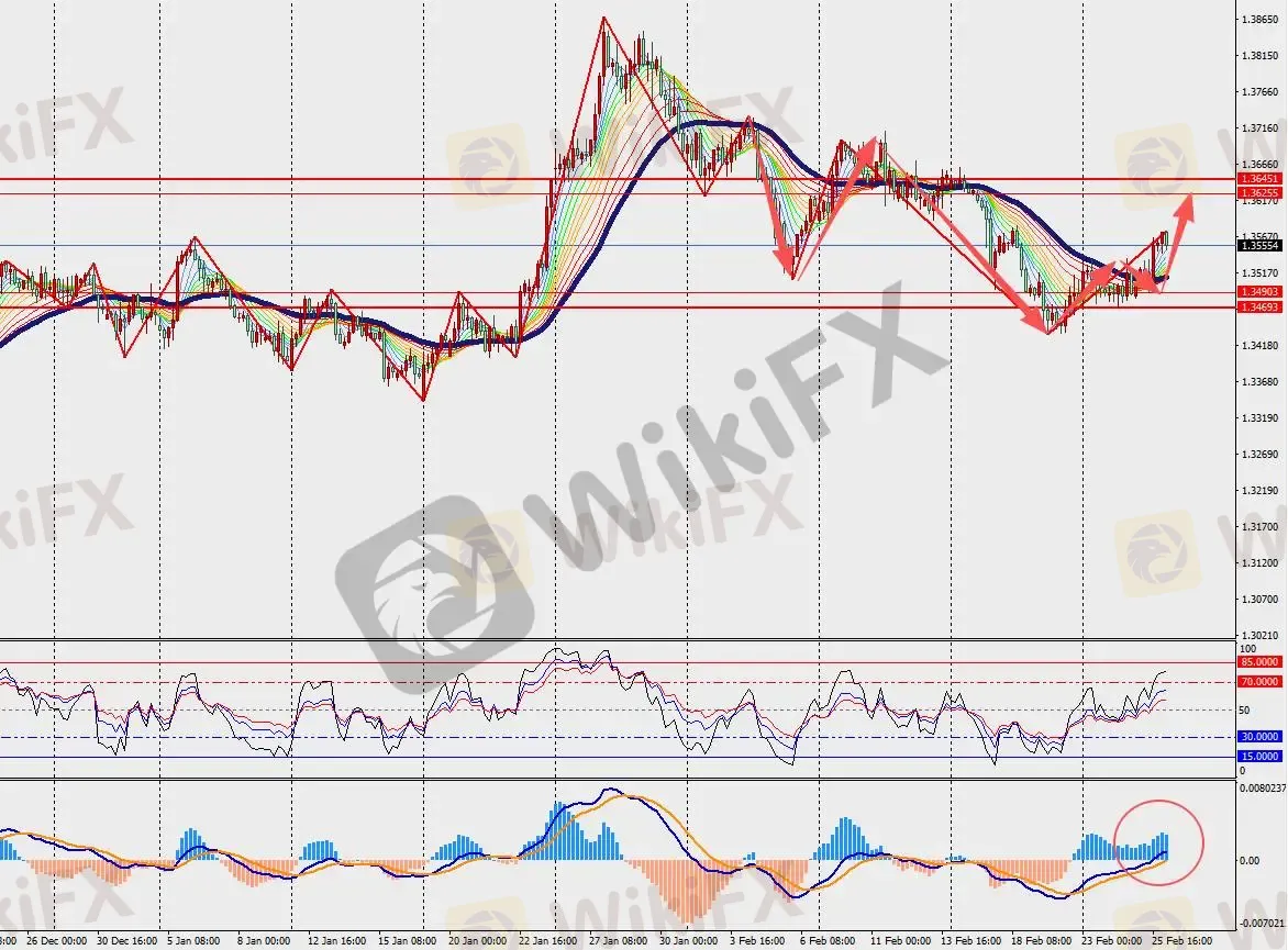 第一阻力位:1.3610 第一支撑位:1.3500