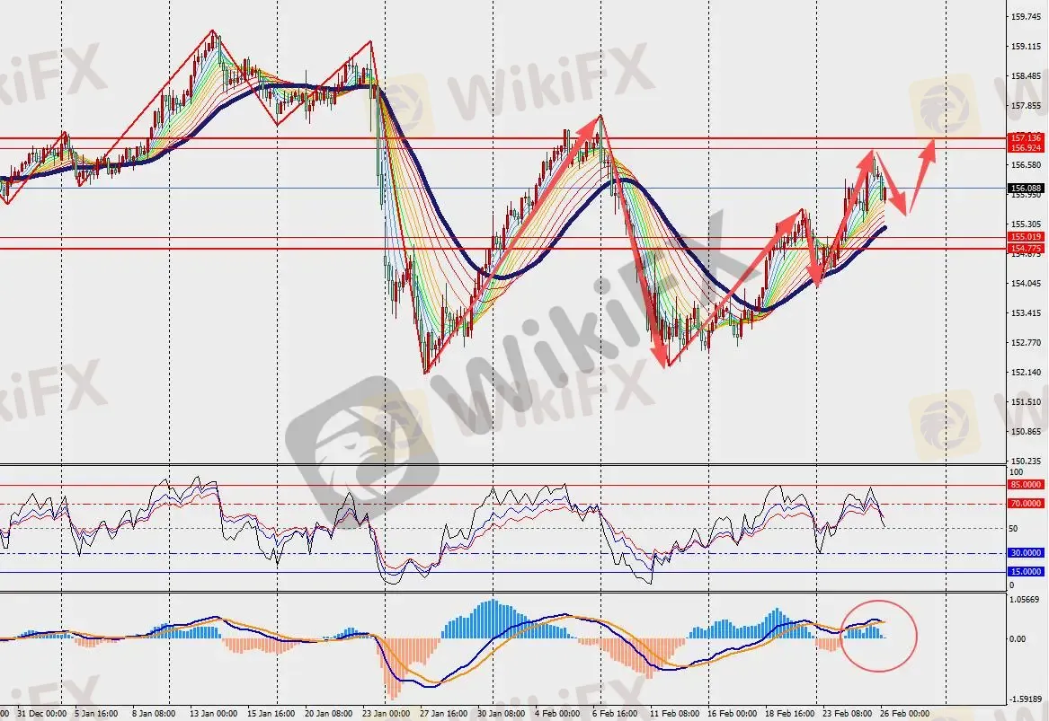 第一阻力位:156.80 第一支撑位:155.20