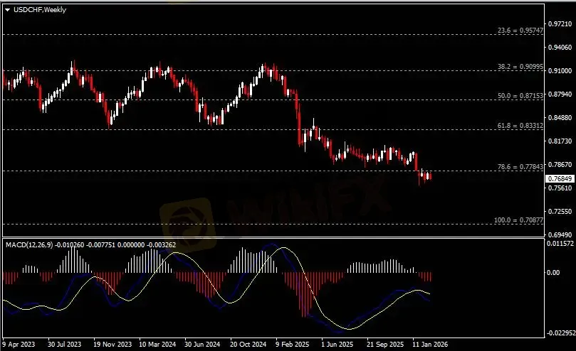 周线图显示美元兑瑞郎震荡下挫,当前承压于0.7780阻力。 从MACD来看,快慢线向下运行,红色动能柱温和放量。汇价走势基本和动能柱的变化一致。