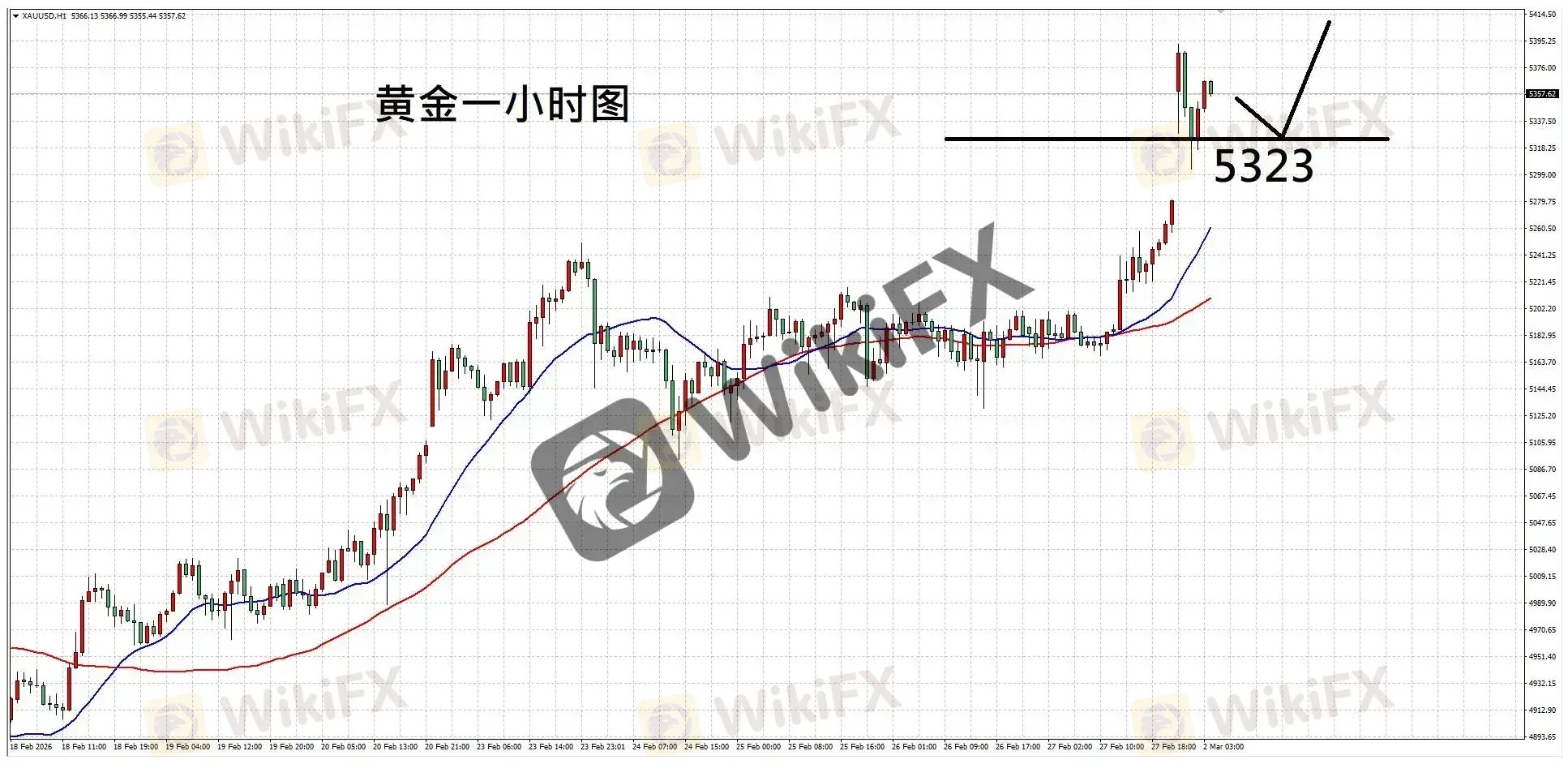 摘要:【基本面分析】上周五美国PPI数据虽然高于预期,稍微削弱利率期货市场对于6月降息的期待,不过美伊关系趋于紧张,地缘政治持续支撑黄金表现;伴随美军击毙伊朗最高领袖哈梅内伊,伊朗可能面临全面政权更替,并激化伊朗国内矛盾,若后续霍尔木兹海峡原油运输生变,可能导致主要经济体面临再通胀与衰退问题,或有助黄金持续发挥避险以及抗通胀特性。【技术分析】黄金一小时图,走势向上刷新近期高点,均线向上翻扬,反映买盘较强