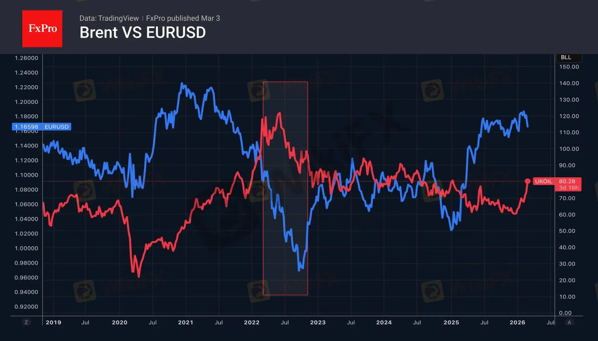 历史是否会重演将取决于中东局势的发展。若该冲突持续导致石油供应减少、产量下滑,布伦特原油价格可能将飙升至每桶120美元。届时美元将大幅走强,兑全球主要货币升值;而以欧元为首的欧洲货币将成为主要受害者。