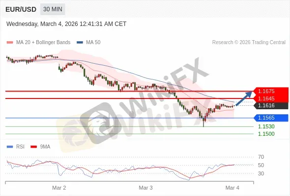 交易策略: 在 1.1565 之上,看涨,目标价位为 1.1645 ,然后为 1.1675。