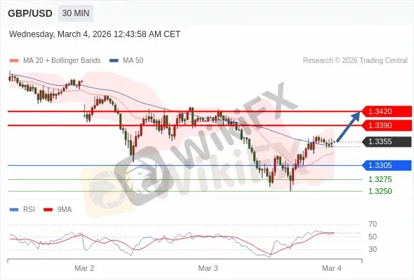交易策略: 在 1.3305 之上,看涨,目标价位为 1.3390 ,然后为 1.3420。