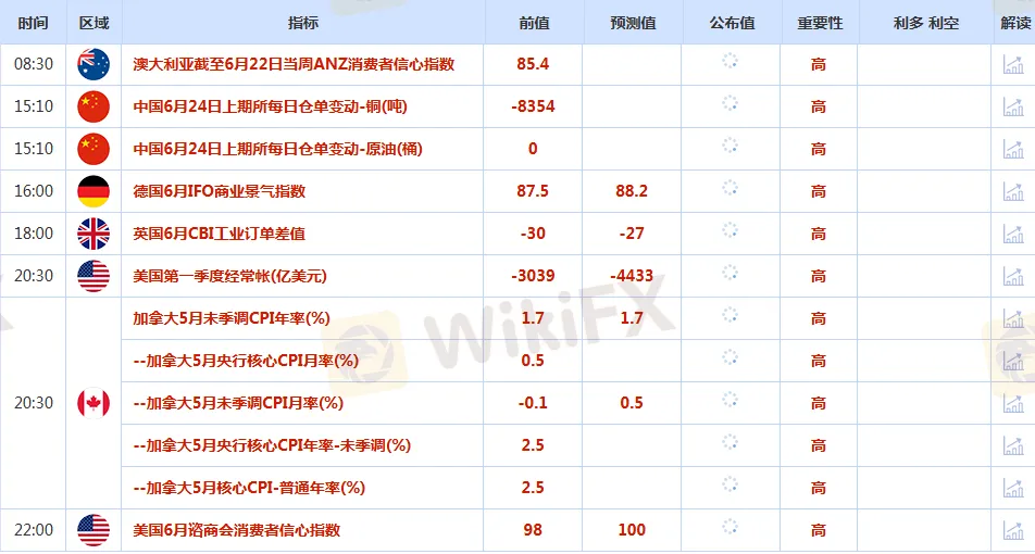 摘要:CWGMarkets市場資訊2025年6月24日(週二):匯訊摘要:週一,美元指數亞盤震盪、歐盤觸及99.40,後因美盤期間美聯儲官員的鴿派言論下跌失守99美元關口,最終收跌0.43%,報98.35。 基準的10年期美債收益率收報4.3490%,2年期美債收益率收報3.8700%。週二(6月24日)亞市早盤,現貨黃金震盪走弱,一度失守3350關口至3342.59美元/盎司,因美國總統特朗普宣佈以色