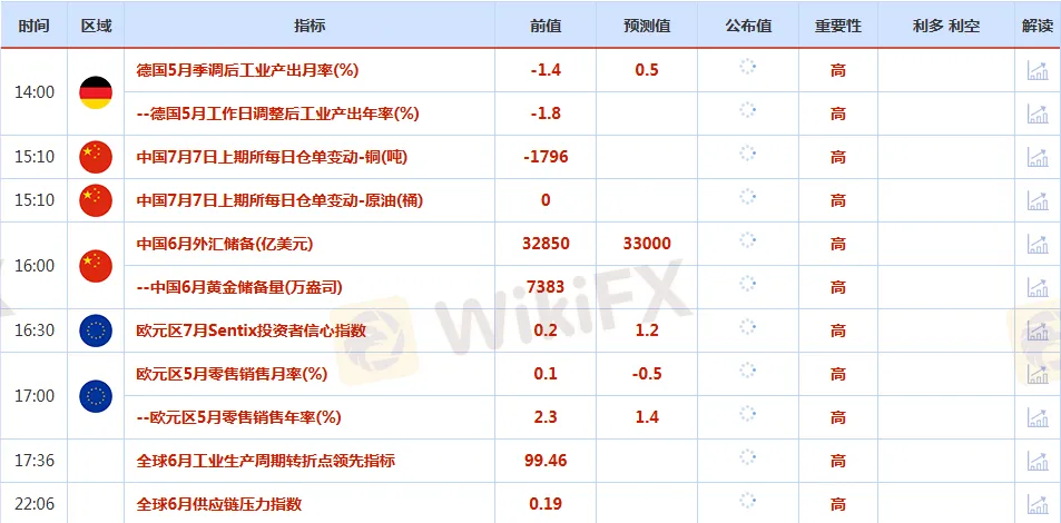因市場預計歐佩克+將再次增產,兩油有所下跌。 WTI原油在歐盤時段急速下跌,並一度至65.24美元的日內低點,最終收跌1.07%,報65.62美元/桶; 布倫特原油收跌0.62%,報68.14美元/桶。