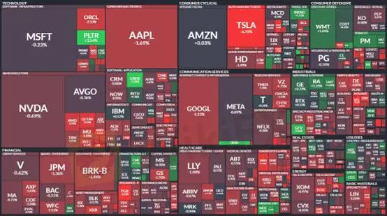 (圖一、S&P500產業地圖;資料來源:FINVIZ)