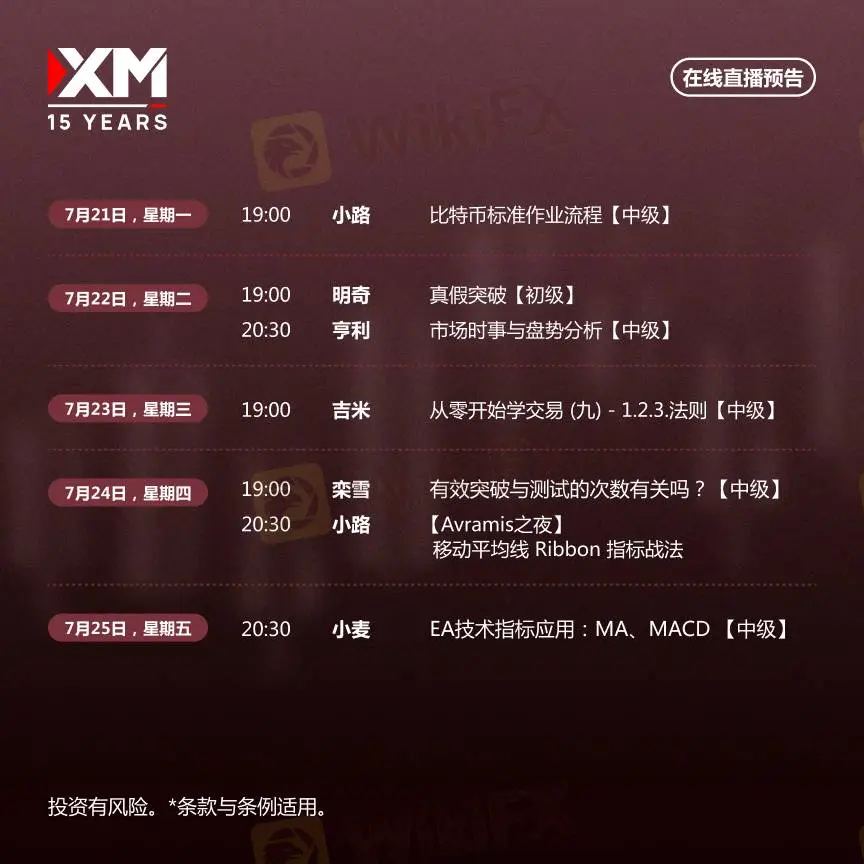 XM 為全球交易者打造每日線上直播講座,週一至週五不間斷,帶你從入門到進階,全面掌握交易知識與實戰技巧。