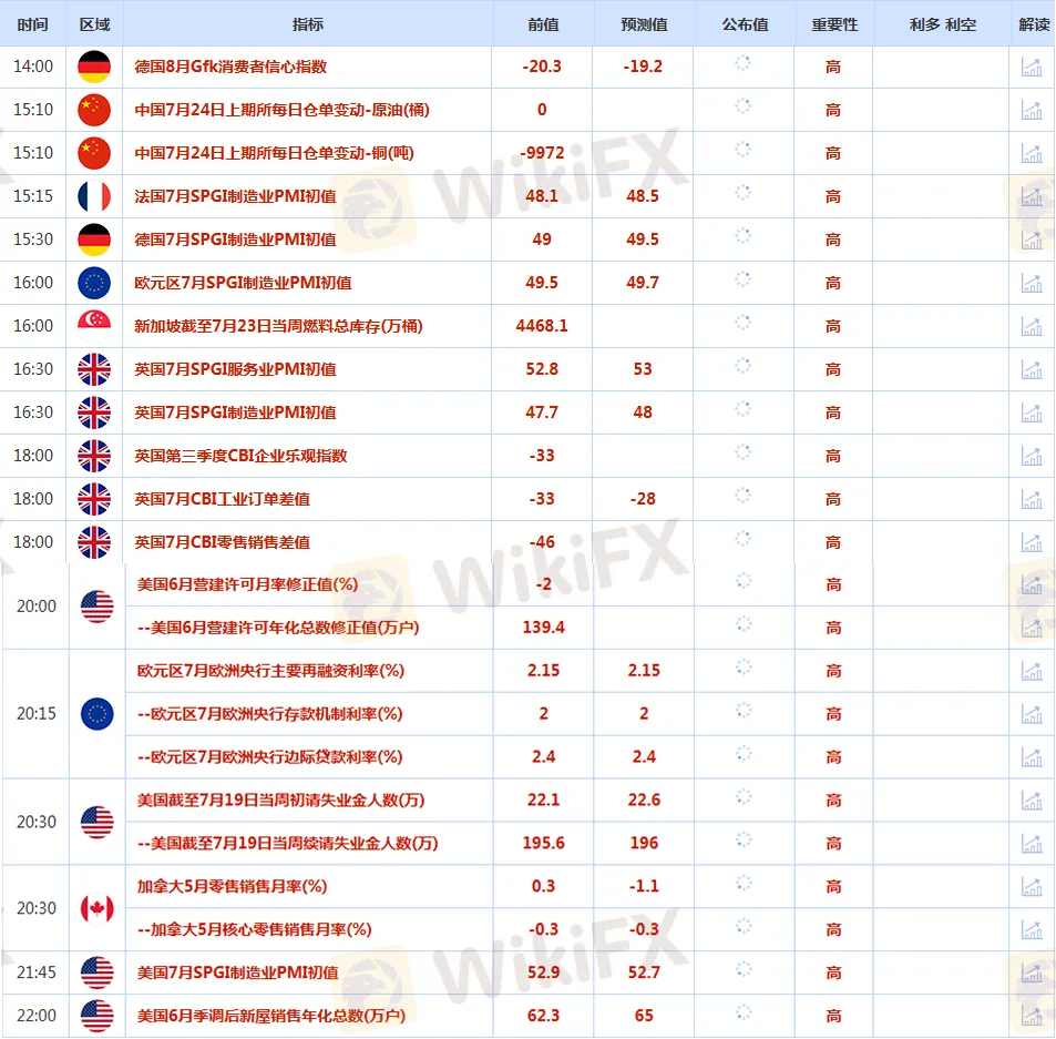 摘要:CWG Markets市場資訊2025年7月24日(週四):匯訊摘要:週三,隨著美國與更多貿易夥伴達成協議,市場避險情緒降溫。 美元指數依舊疲軟,最終收跌0.16%,報97.162。 美債收益率全線回升,基準的10年期美債收益率收報4.388%,2年期美債收益率收報3.886%。週三,黃金市場經歷了一場“過山車”行情。 金價在亞市早盤一度沖高至五周高點3438美元/盎司,但隨後快速回落,單日跌幅超