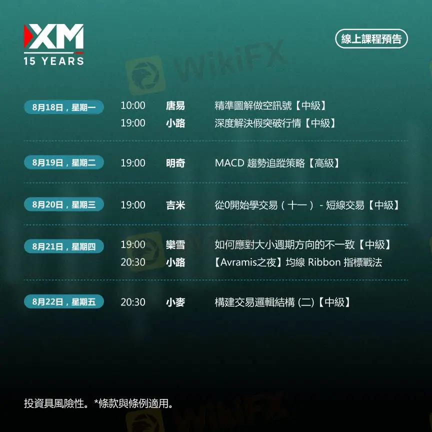 |XM| 中文線上直播講座,本週預告(8/18-8/22)