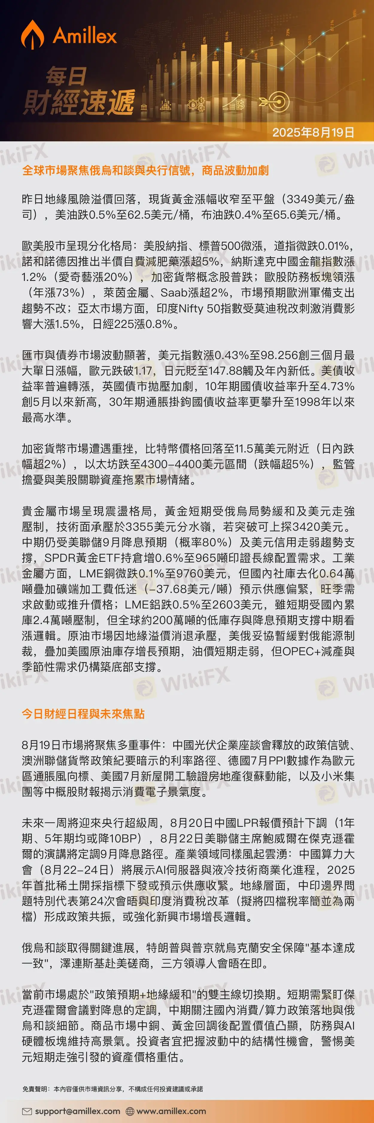 Amillex每日匯評:全球市場聚焦俄烏和談與央行信號,商品波動加劇