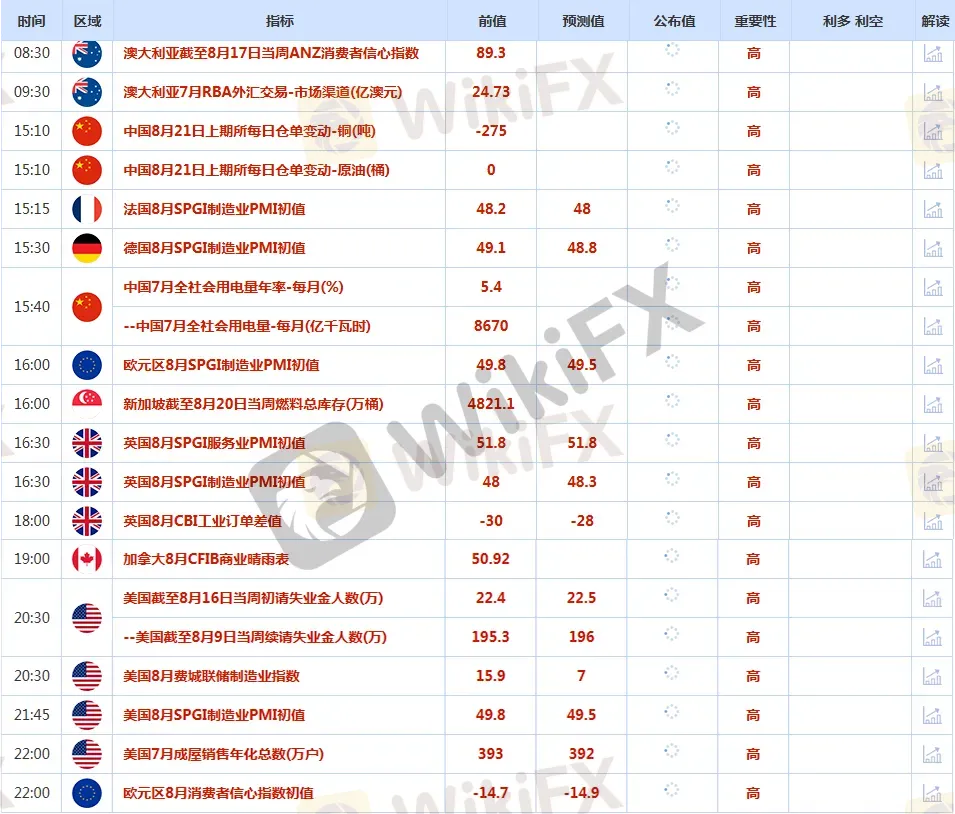 摘要:CWGMarkets市場資訊2025年8月21日(週四):匯訊摘要:週三,美元指數先漲後跌,盤中一度升至98.42的日內高點,隨後抹去日內全部漲幅並轉跌,但在會議紀要顯示只有兩名美聯儲決策者支持9月降息後,美指縮減跌幅,最終收跌0.05%,報98.20; 基準的10年期美債收益率收報4.299%,2年期美債收益率收報3.752%。週三金價守住100日均線關鍵支撐,並反彈近40美元,最高觸及3350