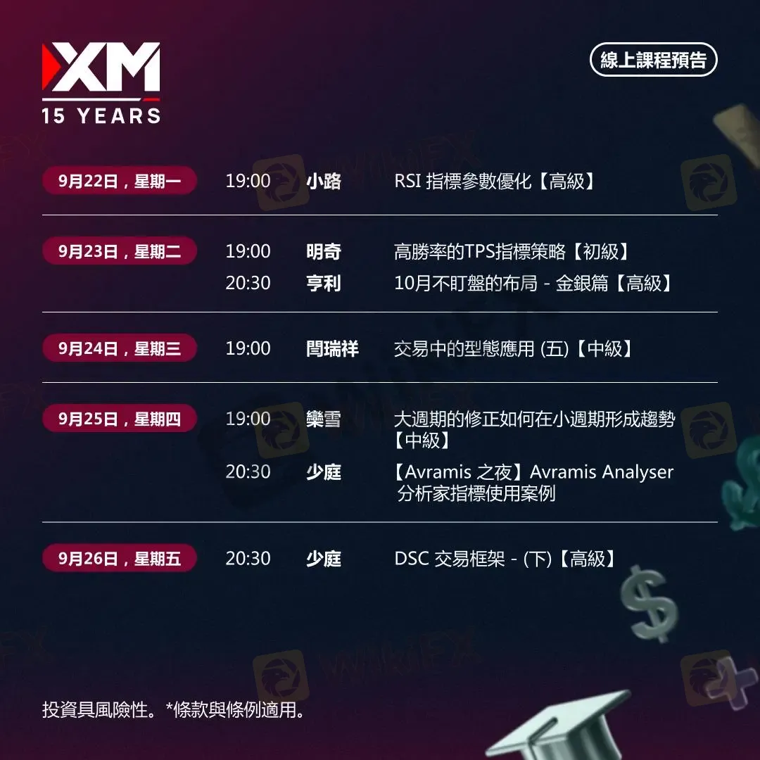 |XM| 中文線上直播講座,本週預告(9/22-9/26)