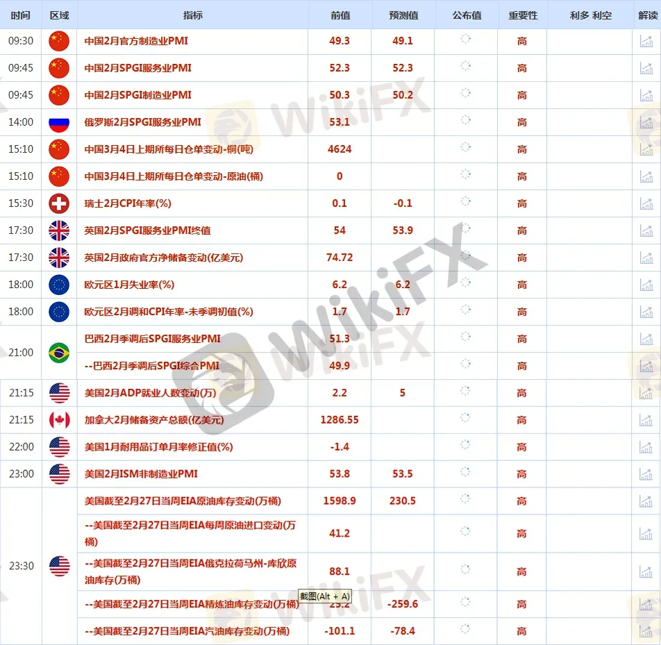 地緣政治方面,伊朗衝突已進入第四日,荷莫茲海峽被宣布關閉,導致指標原油價格急升逾8%。市場分析師指出,能源基礎設施受損及油輪運輸中斷,推升了原油、天然氣及成品油價格持續走強的風險,這加劇了通膨擔憂並推遲了市場對央行降息的預期,從而導致黃金缺乏支撐。